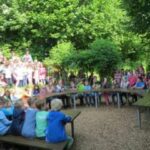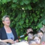 Eröffnung des „Grünen Klassenzimmers“ an der Ernst- Reuter-Schule in Grifte: Schulleiterin Corinna Beilharz begrüßte Kinder und Eltern. Unterricht draußen an der frischen Luft, das gibt es nicht an jeder Schule. Umso mehr freuten sich jetzt die Schüler, Lehrerinnen und Eltern der Ernst-Reuter-Schule in Grifte, ihr neues „Grünes Klassenzimmer“ feierlich einzuweihen. Im Garten hinter dem Schulgebäude stehen, von Büschen umgeben, im Halbkreis neue Bänke und Tische. Das grüne Klassenzimmer ist ein ruhiger und schattiger Ort im Freien, an dem ab sofort Unterricht stattfinden kann und den die Schüler in ihrer freien Zeit zum Lesen, Schreiben, Singen oder einfach zum Ausruhen nutzen. Am Eröffnungstag versammelte sich im grünen Klassenzimmer die ganze Schule. Schulleiterin Corinna Beilharz begrüßte die Kinder und Erwachsenen. „Jetzt haben wir unsere Schule noch ein bisschen schöner gestaltet“, sagte sie. „Unterricht an der frischen Luft, das ist eine tolle Sache.“ Die Schüler durften das Absperrband durchschneiden, und dann testeten sie, wie es sich in dem neuen Schulraum ohne Fenster und Türen aushalten lässt. „Das ist echt cool“, lautete der Kommentar.