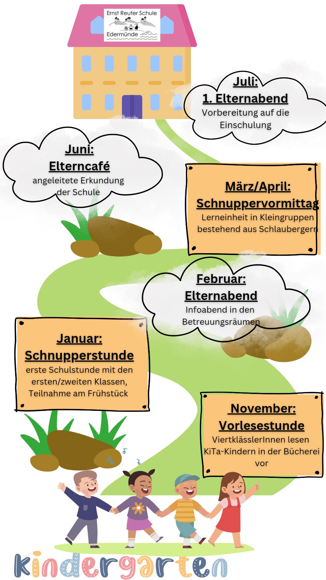 Für Kinder ist der Übergang vom Kindergarten in die Grundschule ein sehr großer und wichtiger Meilenstein. Aus Kindergartenkindern werden Grundschüler, das geht mit einer Menge Veränderung und großen Herausforderungen einher. Ein gelungener Start in die Grundschule kann einen positiven Effekt auf die gesamte Schullaufbahn haben. Deswegen ist es wichtig, dass Eltern, Erzieher und Lehrkräfte den Kindern den Übergang so leicht wie möglich gestalten.Termine