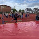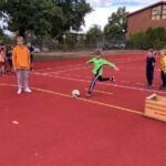 Am Freitag, den 9. September 2022 brachen viele Viertklässler aus verschiedenen Grundschulen des Schwalm-Eder-Kreises auf, um der Einladung der Gesamtschule Guxhagen zur diesjährigen Sommerolympiade zu folgen. Die meisten kamen mit Bus und Bahn nach Guxhagen. Wir Kinder der 4a und 4b der Ernst-Reuter-Schule reisten mit den Fahrrädern aus Edermünde an. Nach der 50- minütigen Fahrt wurden auch alle gleich begrüßt und die Wettkämpfe wurden offiziell eröffnet.Alle Klassen nahmen an 8 verschiedenen Disziplinen teil. Sie maßen sich beim Gruppenhochsprung, Standweitsprung, Torwandschießen, Zonenzielwurf, 6-Tage-Rennen und beim Biathlon. Außerdem gab es noch die Pedalo-Pendel-Staffel und die abschließende Hindernisstaffel. Bis auf den Biathlon fanden alle Wettbewerbe bei gutem Wetter auf dem Sportplatz der IGS Guxhagen statt. An der Olympiade nahmen insgesamt zehn Grundschulklassen und alle 5. Klassen der IGS Guxhagen teil. Als Belohnung für ihre Teilnahme erhielt jede Klasse eine große Dose Gummibärchen, die die Kinder freudig und mit hochroten Köpfen verspeisten. Der erste Platz wurde sogar mit einem Wanderpokal belohnt. Die beiden Klassen der Ernst-Reuter-Schule schlugen sich hervorragend und fuhren zufrieden mit dem 2. und 5. Platz zurück nach Edermünde, wo einige Kinder doch noch eine Regendusche abbekamen.